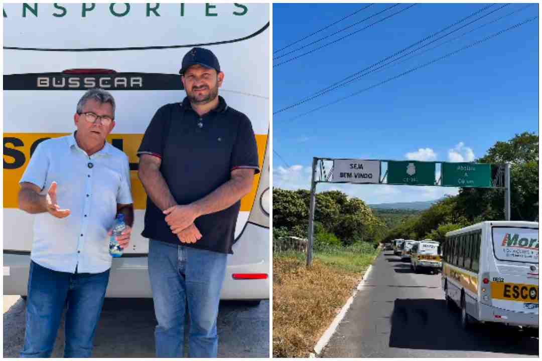 O prefeito Ângelo Furtado e o vice-prefeito Ricardo Leite apresentaram a nova frota com seis veículos que irá realizar o transporte escolar das 12 rotas do município de Abaiara–CE.