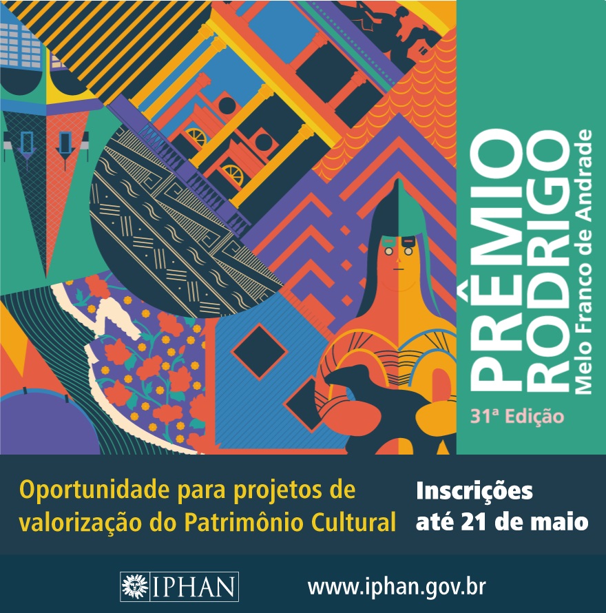 Cultura | As inscrições para a 31ª edição do Prêmio Rodrigo Melo Franco de Andrade do Instituto do Patrimônio Histórico e Artístico Nacional (Iphan) estão abertas até dia 21 de maio. O objetivo do prêmio é estimular e valorizar aqueles que atuam em favor da preservação do patrimônio cultural brasileiro por meio da distribuição de premiação em dinheiro e do Selo do Prêmio Rodrigo Melo Franco de Andrade-2018.