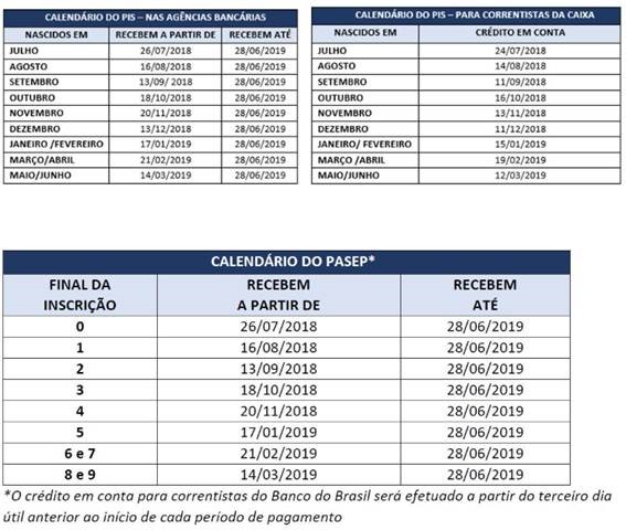 Os trabalhadores nascidos entre julho e dezembro recebem o abono ainda este ano. Já os nascidos de janeiro a junho poderão realizar o saque em 2019 (veja tabela abaixo). O prazo final de recebimento para todos os trabalhadores favorecidos pelo programa é 28 de junho de 2019.