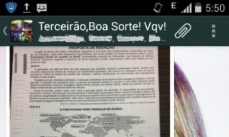 Foi confirmado nesta quinta-feira (18) o vazamento do tema da prova de redação do Exame Nacional do Ensino Médio (Enem) de 2015. A informação é do delegado regional de Combate ao Crime Organizado da Superintendência da Polícia Federal (PF) no Piauí, Alexandre Uchôa. De acordo com ele, a foto com o tema recebida pelo estudante Jomásio Barros (17), que fez a denúncia, é verdadeira.