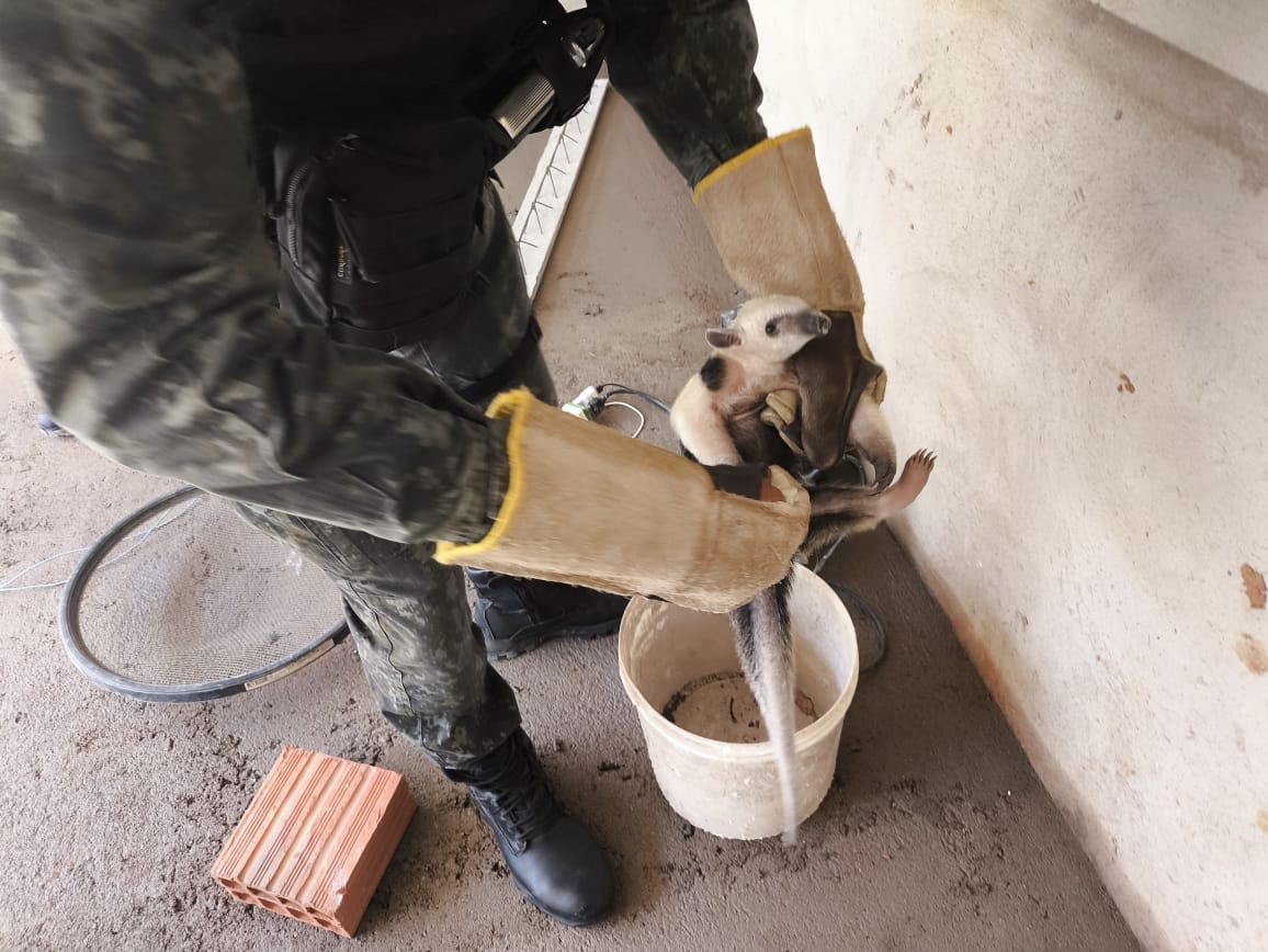 Na manhã desta quinta-feira (05/09), a Polícia Militar resgatou um filhote de tamanduá-mirim que foi encontrado no interior de uma obra em construção no bairro Zacarias Gonçalves, na cidade do Crato, no Ceará.