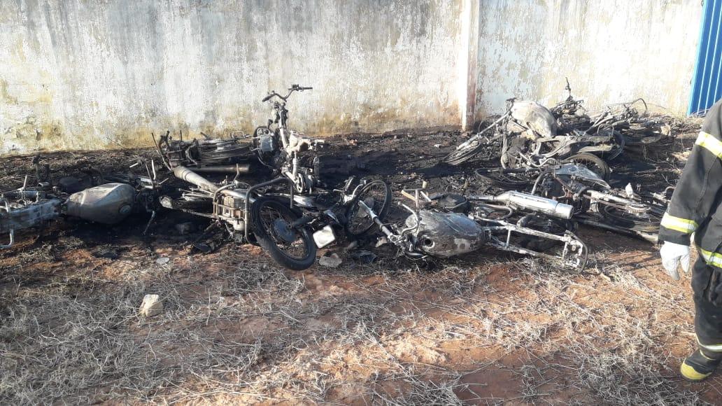 Motocicletas que estavam estacionadas no pátio do Departamento Municipal de Trânsito (Demutran) de Caririaçu foram atingidas por um incêndio, na tarde desta terça-feira (17). O fogo foi provocado por fogos de artifícios jogados no local, segundo funcionários. Ninguém se feriu.