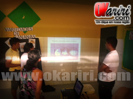 Encontrar as concentrações de amido em bananas é outro projeto curioso da mostra. “Se ela está verde ou madura, descobrir qual detém mais amido, este é o nosso objetivo”, esclarece o aluno Felício Soares, informando que a equipe esteve no laboratório de informática pesquisando sobre o assunto e visitou uma plantação de banana no vizinho município de Mauriti/CE.