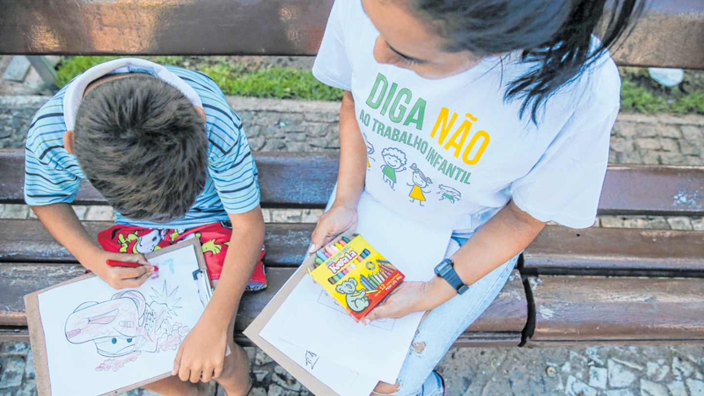 Aos sete anos, um menino entrevistado pela reportagem andava sozinho pelas proximidades da Praça do Ferreira, Centro de Fortaleza, no horário em que deveria estar na escola da rede municipal onde é matriculado. Com tão pouca idade, já tem uma vida cerceada pela impossibilidade de ser criança. Em poucas palavras, pronunciadas com dificuldade, ele admite que não sabe reconhecer as cores e nem os números, mas havia sido ensinado a cobrar R$ 1 por cada pastilha vendida.