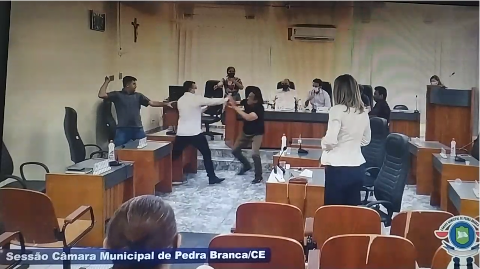 Uma discussão entre os vereadores do partido Solidariedade, Célio Lopes e Franzé, na manhã desta sexta-feira (20), na Câmara Municipal de Pedra Branca, quase terminou em agressão física. Enquanto o primeiro discursava, o segundo avançou sobre ele, mas colegas do Legislativo o impediram. A sessão foi suspensa e só deve retornar na próxima semana.
