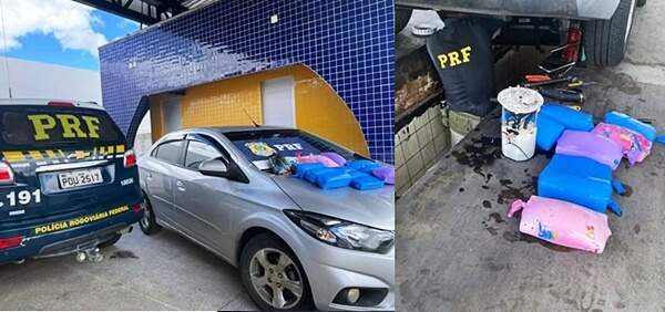 Era por volta das 11 horas quando policiais realizaram a ação, que aconteceu na BR 116, KM 478, o veículo modelo Prisma/Chevrolet onde, encontraram 11,5Kg de substância análoga à cocaína e 3Kg de substância análoga à crack que estavam escondidas em um compartimento dentro do tanque de combustível do carro.