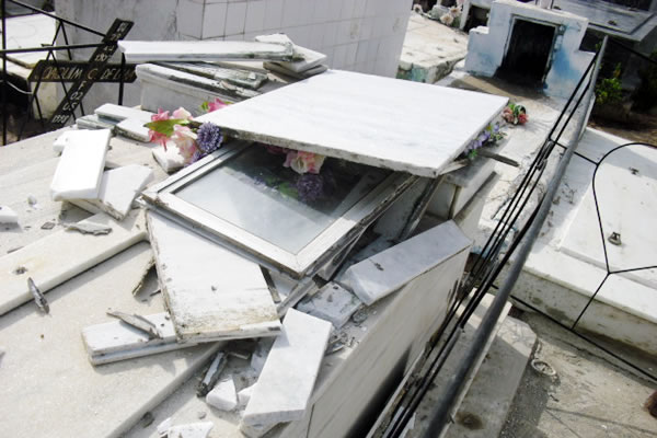 Túmuloes foram quebrados e restos mortais profanados (Foto: Richard Lopes)
