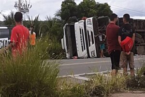 Brejo Santo-CE: caminhão carregado com produtos de limpeza é saqueado após tombar na BR-116