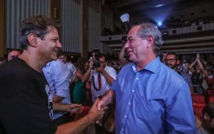 Ao som de “Lula Livre” Ciro e Haddad se cumprimentam em festival de cinema em Fortaleza