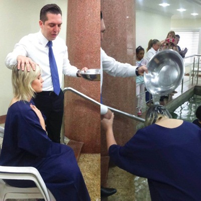 Ela foi batizada na manhã deste domingo, 1, na Igreja Universal de Porto Alegre pelo pastor Leandro Zangarine. “Me sinto purificada, aquela Andressa morreu e glorificarei o nome de Deus e do Senhor Jesus Cristo aos quatro cantos do mundo, o quanto ele é vivo, é maravilhoso!”, emociona-se ela, que não pode ser batizada conforme o ritual, dentro de uma piscina, por imersão: “Estou com um dreno em cada perna e passando por essa provação, mas com muita fé, porque não existe cruz maior que não possamos carregar! Me batizei por aspersão e aquela Andressa Morreu e foi enterrada e todos os meus pecados foram perdoados. Assim que minha perna estiver fechada e cicatrizada, sem o dreno farei o batismo por imersão. Farei quando estiver curada”.