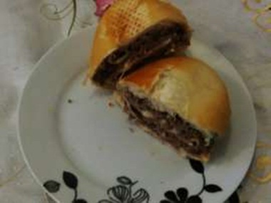 - Faça bolinhas de carne e achate para fazer o hambúrguer, você precisará de dois hambúrgueres para poder fazer um recheado
