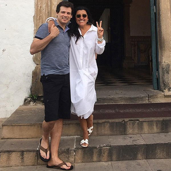 Celso Portiolli e Regina Casé se encontraram em Salvador, nesta sexta-feira (13).