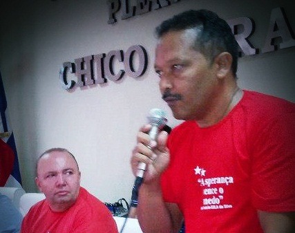 Professor Aglaísio falando ao microfone, ao lado, Figueiredo, candidato pelo partido em 2012 | Foto: Acervo Pessoal