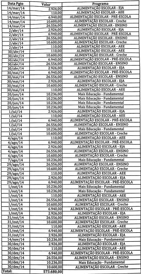 Veja os investimentos da alimentação em 2014; os dados foram repassados pela Secretaria de Educação, através da Assessoria de Comunicação: