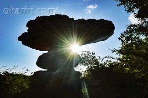 [ads1] A matéria em questão traz relatos sobre um vídeo que mostra a “Pedra do Chapéu”, e relata que ela é um dos monumentos naturais mais bonitos da região do Cariri cearense, frisa ainda que ela é uma pedra grande, encima de pedras menores, seu formato visto de um ângulo se assemelha a um chapéu. Já em outro ângulo a pedra se assemelha a um pássaro (gavião) pousado. A Pedra do Chapéu está localizada em um vale, distante da sede do município de Milagres-CE, aproximadamente três quilômetros. Para chegar até ela, é preciso cruzar por boa parte da cidade e entrar no calvário (palco de pedra onde é encenado a “Paixão de Cristo”), em seguida atravessar o lixão onde são jogados os resíduos da cidade.