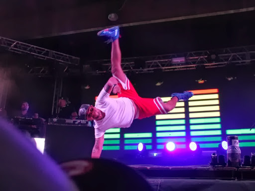 De bermuda, o cantor sensualizou no palco e mostrou sua elasticidade fazendo acrobacias. Mais cedo, Naldo esteve na Arena da Barra, no Rio, acompanhando o jogo da NBA entre o Chicago Bulls e Washington Wizards.